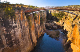 Aujourd’hui, une excursion privée est organisée à la découverte du magnifique Blyde River Canyon qui offre des vues à couper le souffle. Accompagné de votre guide anglophone privée, rejoignez la Panorama Route R532, 70 km de paysages grandioses et de panoramas exceptionnels entre le point de vue de Three Rondavels et Graskop. Au programme de cette journée exceptionnelle, Pinnacle Rock, une impressionnante colonne de rocher en quartzite de 30 m de hauteur qui se dresse au milieu de la forêt dense dans la gorge de Driekop. Puis à God’s window offrez-vous un panorama spectaculaire sur la vallée Lowveld avec le Parc national Kruger en toile de fond, avant d’atteindre Wonder View à 1 730 m d’altitude. Ce belvédère, le plus haut de la Panorama Route, jouit de belles vues à 360 degrés sur les pics et les plateaux environnants. À proximité, visitez le site naturel spectaculaire de Bourke’s Luck Potholes accessible par des sentiers et des passerelles. Au confluent de la Blyde River et de la Treur River, les eaux et les roches tourbillonnantes ont formé d’impressionnantes marmites de géant teintées de couleurs ocre, blanc et marron foncé. Ces merveilles naturelles marquent le début du Blyde River Canyon. La rivière Blyde a creusé des gorges spectaculaires à travers la montagne. Plus de 26 km de falaises recouvertes d’une végétation subtropicale luxuriante plongent dans la rivière 800 m en contrebas faisant de ce canyon le troisième plus grand et le plus vert au monde. Des points de vue aménagés sur les hauteurs offrent des panoramas à couper le souffle, notamment sur les célèbres Three Rondavels, trois pics de quartzite et schiste qui surplombent la rivière à 600 m de hauteur ressemblant aux maisons africaines traditionnelles. Tous ces sites font partie de la réserve naturelle de Blyde River Canyon essentiellement accessible à pied.