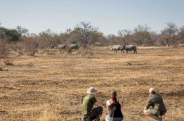 La journée commence à 5 h 00 par un petit-déjeuner léger avant le départ pour un safari à pied de 3 ou 4 heures. Cette marche est guidée par un spécialiste qui vous expliquera comment analyser les traces des animaux, repérer les indices de leur passage et reconnaître les différentes espèces de plantes qui peuplent la réserve. Une matinée riche en sensations pendant laquelle vous approchez silencieusement la faune, l’occasion unique d’observer au plus près les nombreuses espèces d’herbivores comme les girafes, les zèbres, les phacochères ou encore les koudous. Retour au camp pour un petit-déjeuner copieux puis profitez d’un moment de détente au bord de la piscine avant le déjeuner.