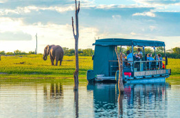 Après un déjeuner au fil de l’eau, l’après-midi est consacré à une balade en bateau sur la rivière, jusqu’aux paysages marécageux de Sedudu Island. Chobe est un véritable paradis pour les passionnés d’ornithologie. On y recense plus de 450 espèces d’oiseaux, du magnifique aigle pêcheur africain au très coloré guêpier carmin du Sud. Vous aurez également l’occasion de partir à la rencontre d’espèces impressionnantes comme le jabiru d'Afrique, le martin-pêcheur géant ou le héron Goliath. Retour au lodge en fin de journée.