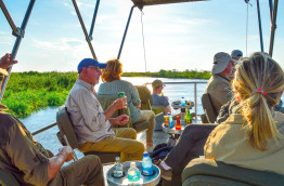 Après un déjeuner au fil de l’eau, l’après-midi est consacré à une balade en bateau sur la rivière, jusqu’aux paysages marécageux de Sedudu Island. Chobe est un véritable paradis pour les passionnés d’ornithologie. On y recense plus de 450 espèces d’oiseaux, du magnifique aigle pêcheur africain au très coloré guêpier carmin du Sud. Vous aurez également l’occasion de partir à la rencontre d’espèces impressionnantes comme le jabiru d'Afrique, le martin-pêcheur géant ou le héron Goliath. Retour au lodge en fin de journée.