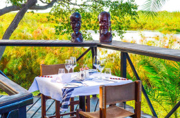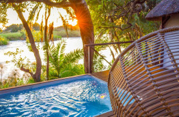 Dîner et nuit au Kaza Lodge, situé sur les berges du Zambèze, dans un cadre naturel sauvage. Cette adresse luxueuse compte 8 bungalows au toit de chaume, décorés avec soin et offrant de grands espaces intérieurs et extérieurs ouverts sur les paysages du fleuve. Parfaitement équipés, tous les bungalows disposent d’une chambre, d’un salon et d’une salle de bains avec douche et baignoire. Vous disposez également d’une terrasse privative équipée d’une piscine, d’une douche et de chaises longues.