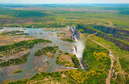Après cette immersion dans la culture locale, vous continuez votre route vers l’aéroport, où vous embarquez pour un vol privatif à destination des majestueuses Chutes Victoria, l’un des plus impressionnants spectacles naturels du monde. Surnommées « Mosi-oa-Tunya » ou « la fumée qui gronde » par les locaux, les Chutes Victoria forment un spectacle qui s’étend sur près de 2 km. Enveloppées par une forêt tropicale luxuriante et une brume épaisse, elles font partie des plus beaux spectacles naturels au monde. Les chutes sont formées par le fleuve Zambèze qui plonge d’une falaise haute de 100 m, formant une frontière naturelle entre le Zimbabwe et la Zambie. Ce fleuve, long de 2 750 km, déverse environ 950 000 litres d’eau par seconde, créant de très hautes éclaboussures qui forment un brouillard constant, favorisant l’apparition des arcs-en-ciel. Pour admirer ce site unique, inscrit au Patrimoine mondial de l’UNESCO, une visite guidée des chutes à pied est prévue cet après-midi.