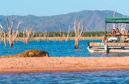 Journée de navigation sur le lac Kariba. En début de matinée, vous troquez votre navire pour une petite embarcation à moteur, idéale pour remonter les bras d’eau qui serpentent jusqu’au Parc national de Matusadona. Cette zone sauvage et peu fréquentée offre de belles opportunités d’observation animales. Admirez les éléphants venant s’abreuver, des crocodiles se prélassant sur les berges et la grande diversité d’oiseaux perchés dans les arbres. Retour au bateau pour le déjeuner, puis poursuite de la navigation vers Palm Bay, une baie paisible située sur la rive Sud du lac. En fin d’après-midi, nouvelle sortie en bateau à moteur pour admirer le coucher de soleil sur le lac Kariba. Les teintes orange, rouges et dorées du ciel transforment les paysages de troncs noirs en une scène presque irréelle, baignée d’une atmosphère mystérieuse.