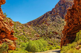 Vous rejoignez ensuite Prince Albert, une charmante petite ville nichée au pied du massif. Son architecture victorienne et ses boutiques artisanales lui confèrent un caractère unique. Ici, un déjeuner typiquement sud-africain vous attend dans un restaurant local, une belle occasion de savourer les spécialités régionales dans un cadre authentique (à régler sur place). L’après-midi, cap sur les vastes paysages désertiques du Grand Karoo jusqu’au col de Meiringspoort et sa cascade. Accessible après une courte marche, ce havre de fraîcheur est le lieu idéal pour une baignade pendant les beaux jours ! Vous reprenez ensuite la route vers Oudtshoorn en traversant le pittoresque village de De Rust. Après cette journée riche en découvertes, vous êtes transféré à votre hôtel ou au centre-ville d’Oudtshoorn vers 17 h 30.