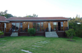 Construites en arc de cercle sous forme de petits bungalows en bois, les chambres ont toutes une terrasse privative avec vue sur la baie, lits simples ou double, douche ou baignoire, télévision, nécessaire à thé et café, minibar. La décoration est simple mais très agréable.