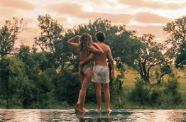 L’Honeyguide Mantobeni Camp dispose d’une belle piscine à débordement entourée de chaises longues. C’est le lieu idéal pour observer les éléphants qui viennent s’abreuver au point d’eau.