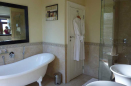 - Le bâtiment à l’arrière, plus récent, où sont situées les chambres Alfred qui sont très grandes, plus modernes, avec des salles de bain magnifiques, seulement séparées des chambres par des baies vitrées. Ce sont nos préférées.