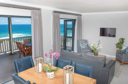 Les 9 Three Bedroom Beach Villas sont les plus grandes. Idéales pour les familles, elles disposent de 3 chambres avec un lit king-size et d’une salle de bains privative. Le salon, la cuisine équipée et la salle à manger s’ouvrent sur une grande terrasse avec vue sur l’océan. Elles peuvent accueillir jusqu’à 6 personnes.