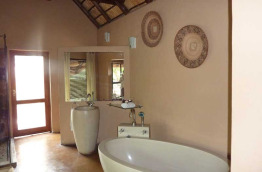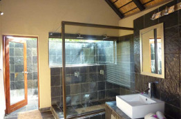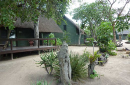 Les 7 bungalows sont construits en arc de cercle derrière le salon. Très grands, ils sont bien décorés et ont tous une grande baie vitrée face au bush, une terrasse privative, lits simples ou doubles, très grande salle de bain avec douche intérieure et extérieure, baignoire, ventilation, minibar, coffre, sèche-cheveux, nécessaire à thé et café.