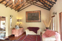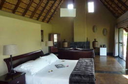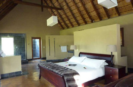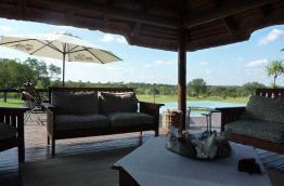 Les parties communes sont largement ouvertes sur le bush, face à la piscine, sur un point d’eau et sur une jolie pelouse où broutent les impalas.