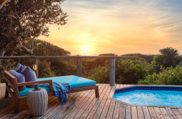 La Deluxe Ocean View Family Room offre la même disposition mais bénéficie d’une petite terrasse avec piscine privative extérieure pour profiter d’une vue unique sur l’océan indien.