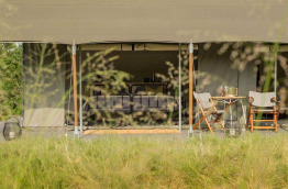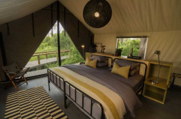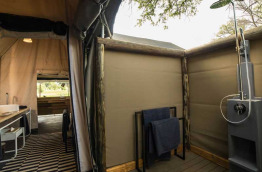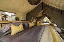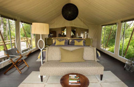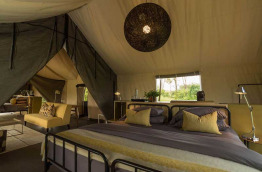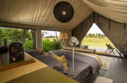 Les 8 tentes doubles ou twins sont des tentes traditionnelles de safari posées sur un beau plancher en bois sur pilotis. Elles sont reliées entre elles par des passerelles en bois. Les lits sont positionnés face à la terrasse, qui donne elle-même sur la rivière, et l'arrière de la tente est occupé par la salle de bain, avec doubles vasques et douches intérieure et extérieure.