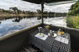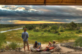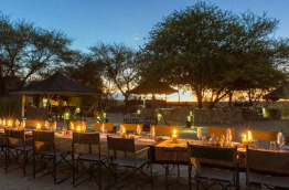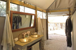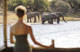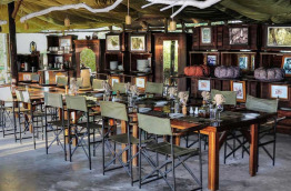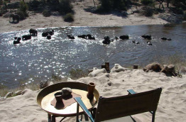 Les parties communes, sous de vastes tentes ouvertes vers l'extérieur et meublées d'objets anciens, ont vue sur la rivière et ses trous d'eau permanents. Il est particulièrement agréable de s'y détendre le soir, un verre à la main.