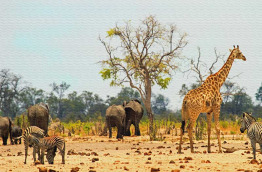Deux jours complets sont consacrés à l’exploration du Parc national de Hwange tant les animaux sont nombreux. Vivez des moments inoubliables au milieu des éléphants et des troupeaux d’antilopes ! Ce parc est l’un des plus beaux refuges d’Afrique avec près de 60 points d’eau qui furent créés, alimentés par les eaux souterraines. D’une manière générale, le parc est extrêmement aride et les animaux ne survivent en saison sèche que grâce aux points d’eau artificiels autour desquels ils se regroupent. Il abrite de nombreux troupeaux d’éléphants, de buffles, de zèbres, et possède une grande concentration de girafes. C’est l’un des rares parcs d’Afrique où vous avez de grandes chances de voir les deux sortes d’hippotragues (noir et rouan) ainsi que des lycaons. De nombreux prédateurs y sont également présents, ainsi que beaucoup d’espèces d’oiseaux sauvages. Il est possible d’y voir des rhinocéros mais ils sont timides et assez peu nombreux.