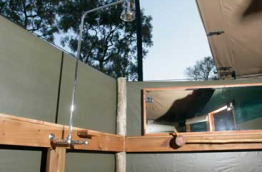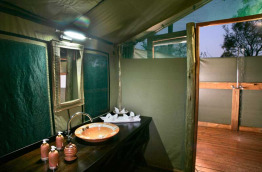 Les 16 tentes disposent d'un plancher en teck sur pilotis. Lits simples, terrasse privative, salle de bain avec double vasque, douche extérieure, WC.