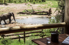 Les éléphants sont les résidents permanents de la rivière devant le lodge, mais tous les animaux peuvent venir y boire.