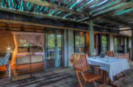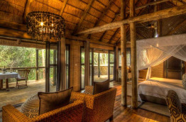 Les 12 chalets sont disséminés le long de la rivière, largement ouverts par des pans coulissants sur une grande terrasse privative, lits simples ou double et salle de bain avec douche. Ils sont magnifiques, très vastes, décorés avec de beaux meubles et des tissus aux tons beiges/gris très doux.