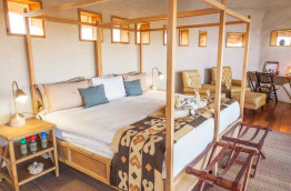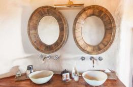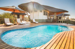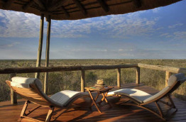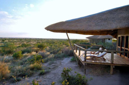 Les 8 chalets, très vastes, aux murs peints à la chaux et au toit de chaume, disposent d’un plancher en teck (provenant du Zimbabwe), d’une charpente en bois et de larges pans coulissants tendus de moustiquaires, que vous pouvez au choix laisser ouverts, fermer ou cacher derrière des rideaux. Grands lits simples ou doubles face au désert, grande terrasse privative, salle de bain avec double vasque, douche intérieur et extérieure, WC séparés.