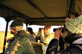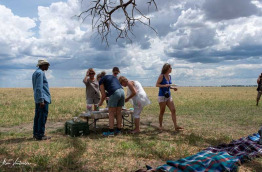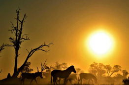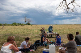 Réveil aux aurores suivi d’un petit-déjeuner léger autour du feu de camp tout en admirant les premières lueurs du soleil sur la savane endormie. Vers 6 h 30, l’aventure commence… A bord d’un véhicule 4x4 ouvert, partez à la recherche de la faune sauvage ! C’est la meilleure heure de la journée pour l’observation animalière. De retour au camp, le déjeuner est servi à table sous forme de buffet (salades, viande froide, pain frais) puis vous avez du temps libre pour vous détendre et profiter des paysages. Aux heures les plus chaudes de la journée une sieste est généralement appréciée ! Un nouveau safari est prévu quand le soleil commence à baisser jusqu’à la tombée de la nuit. Les animaux sauvages redeviennent plus actifs et les prédateurs nocturnes se préparent à la chasse. Véritable tradition en safari, admirez le soleil se couchant sur la savane un apéritif à la main, un moment magique !