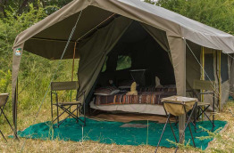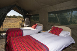 La particularité de ce safari mobile est de dormir en pleine brousse sans négliger le confort. Une équipe logistique s’occupe d’installer le campement sur un site privé pendant que votre guide francophone vous accompagne en safari. Il est prévu deux nuits à chaque étape. Votre tente de 6x3 m est équipée d’un auvent et d’un espace sanitaire privé comprenant une douche avec eau chaude et des toilettes sèches. Des serviettes de toilette et de bain sont mises à votre disposition ainsi qu’une bassine et un miroir. La tente principale est également dotée de larges fenêtres avec moustiquaire, d’un lit de camp avec matelas, d’une couette, d’un oreiller, d’une bouillotte en hiver, d’un tapis, de chaises de safari et d’un éclairage. Dormir en pleine brousse, uniquement séparé des animaux par une toile de tente qui laisse passer tous les bruits, c’est vivre une véritable expérience de brousse forte en émotions.