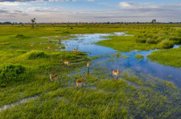 Le vaste réseau de chenaux, de marécages permanents, de prairies inondées et de plaines d’inondation en saison sèche rend le delta unique, ce qui lui a valu un classement au Patrimoine mondial de l’UNESCO. La particularité de l’inondation du delta est de commencer… quand la saison des pluies est terminée ! Il faut en effet plusieurs mois pour que les eaux de l’Okavango arrivent dans le delta et recouvrent la zone. La faune et la flore vivent au rythme des crues et des pluies annuelles. La végétation, abondante et verdoyante tout au long de l’année, attire une faune riche et diversifiée. Les herbivores sont nombreux, notamment les impalas, les gnous, les buffles et différentes sortes de cobes, ainsi qu’une myriade d’oiseaux qui feront le bonheur des amateurs. C’est également l’occasion d’observer de grands mammifères tels que le guépard, le rhinocéros blanc et le rhinocéros noir, le lycaon et le lion.