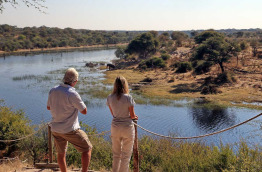 Le Meno A Kwena est un campement surplombant la rivière Boteti. Les 10 tentes sont perchées sur une falaise de 30 mètres de haut et disposent d’une terrasse idéale pour l’observation des animaux.