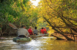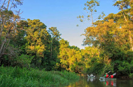 Dans l’après-midi, excursion en canoë-kayak sur les eaux noires d’un magnifique lagon où vivent des loutres géantes et des lamantins.