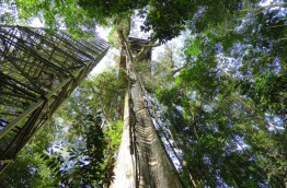 Après le déjeuner, visite d’une tour d’observation construite contre un gigantesque arbre kapok. La vue panoramique depuis le sommet de cette tour et magnifique.