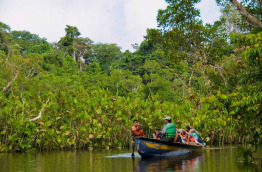 Après une navigation jusqu’au delta de la rivière Panayacu, vous embarquerez dans les kayaks ou les canots pour explorer le lac Panacocha. Ce lac est l’habitat idéal pour les piranhas, le singe d’eau (arawana) et le caïman blanc.