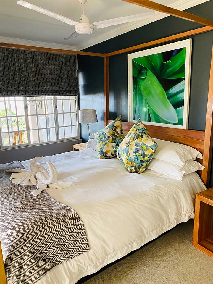L’établissement ne compte que 8 chambres, nichées au milieu de la végétation et à quelques pas de la piscine. Son jardin tropical, parsemé de grands rochers de granite, abrite de nombreuses espèces d’oiseaux et offre de superbes vues sur la vallée et la montagne de Sheba’s Breast. Idéal pour une escapade romantique ou un séjour en famille, le Mogi Boutique Hotel constitue un point de départ idéal pour explorer la vallée d’Ezulwini, avec des sentiers de randonnée facilement accessibles à proximité.