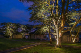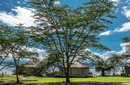 Le camp est bâti à l'intérieur du parc, sur l'escarpement rocheux qui domine le lac d'une centaine de mètres, et il est bien sûr entièrement tourné vers la vue. Les tentes sont alignées au bord de l'escarpement et les parties communes sont à l'arrière, légèrement plus hautes.