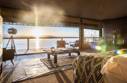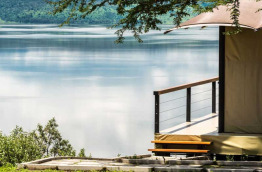 Les 10 tentes ont toutes une superbe vue sur le lac dont on peut profiter pleinement grâce à un pan entier de toile qui se relève, ouvrant de plain-pied sur la terrasse. Elles sont très vastes, avec un grand lit double, minibar, coffre-fort, accès internet Wi-Fi, nécessaire à thé et café. La salle de bains, située dans le prolongement de la chambre, bénéficie elle aussi de la vue sur le lac, notamment depuis la baignoire.