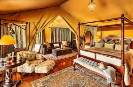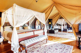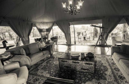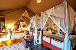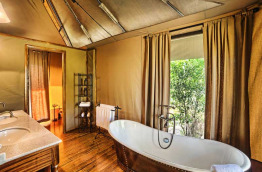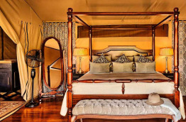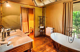Les 16 tentes sont disséminées le long de la rivière, suffisamment loin les unes des autres pour assurer une intimité parfaite. Elles sont très vastes et meublées avec de vrais meubles de style colonial (lits à baldaquin, coffres de rangement en bois clouté…) qui apportent une ambiance particulière, contrastant avec l'aspect camp de brousse des tentes. Chacune possède une très belle terrasse face à la rivière et une salle de bains avec douche extérieure et baignoire.