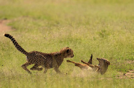 Le Masai Mara est l’une des plus belles réserves d’Afrique. Constituée en grande partie de collines à perte de vue, recouvertes de savane verdoyante ou dorée selon les saisons parsemée d’acacias parasols, la réserve du Masai Mara offre des paysages somptueux et une densité impressionnante d’animaux. Inscrit au Patrimoine mondial de l’Humanité, ce parc est le théâtre de la plus grande migration animale encore existante. Cette importante migration rassemble plus d’1 million de gnous et plusieurs centaines de milliers de zèbres et antilopes, ainsi qu’un très grand nombre de prédateurs qui se rassemblent dans le Masai Mara pendant la saison sèche. Mais l'observation ne s'arrête pas là, les grandes troupes de lions, les éléphants, les girafes des prairies, et les gazelles sont quelques exemples de la faune incroyable visible au Masai Mara tout au long de l'année. Mis à part les véhicules de safaris traditionnels, le Masai Mara est aussi célèbre pour ses survols en ballon ou ses safaris à cheval, qui sont des moyens fabuleux de découvrir ce paradis terrestre.