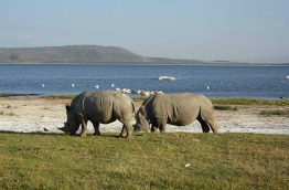 Route vers la région des lacs pour une journée de safari dans le Parc national de Nakuru qui s'étend au Sud de la ville de Nakuru et au bord du lac du même nom. Paradis des ornithologues, ce lac situé à 1 700 m d'altitude et créé en 1961, a été la première réserve ornithologique d'Afrique. Beaucoup de migrateurs en provenance de l'hémisphère Nord fréquentent le Nakuru. Le spectacle des milliers de flamants nains se rassemblant sur les rives du lac est de toute beauté. Parfois entouré d'un cordon de poudre alcaline d'un blanc aveuglant, il offre un spectacle grandiose. Vous y trouverez des phacochères, cobs defasa, magnifiques singes colobes noirs et blancs, des babouins en grand nombre, des girafes de Rothschild, des rhinocéros et même des léopards… sans oublier les grands herbivores comme les buffles ou encore les zèbres. La partie Est du parc est une très belle forêt d'euphorbes, au Sud se trouve une forêt d'acacias qui accueille un programme de réimplantation des rhinocéros, c'est d'ailleurs l'un des rares endroits permettant de les observer et les approcher de très près.