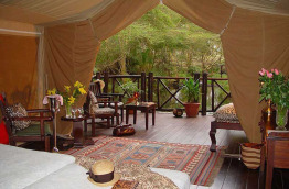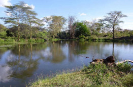 La rivière Loolturesh forme 3 étangs d’eau cristalline autour desquels sont construites les tentes sur pilotis. La fraîcheur permanente qui règne sur les terrasses, grâce à l’eau et à la végétation, est particulièrement agréable aux heures chaudes de la journée. Le soir les hippopotames broutent autour des tentes, ambiance garantie !
