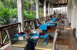 Le Bahari Restaurant vous sert le petit-déjeuner et le dîner au cœur du jardin.