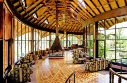 Le lodge est construit dans un immense et très beau parc ombragé par des acacias. Les parties communes sont immenses, tant la salle à manger que le bar, avec de grandes baies vitrées ouvertes sur le parc. Une jolie cheminée centrale, entourée de gros fauteuils, apporte une ambiance cosy.