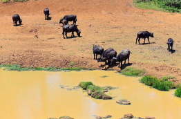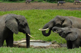Buffles et éléphants sont les occupants habituels du point d’eau, mais vous verrez aussi certainement de nombreux singes.