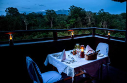 Dans le parc national du Mont Kenya mais facilement accessible, face au point d'eau et à la forêt environnante.