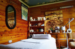 Chemin de randonnée dans la forêt, boutique, massages, coin bibliothèque.
