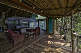 - 4 Standard Tents qui n’ont de tentes que le nom puisque le plancher est en bois et le toit en chaume. Ce sont les plus proches des parties communes, avec une petite terrasse, 2 lits simples et une salle de bains en dur avec douche et w.c.