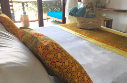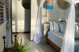Les matériaux sont de qualité et la literie est excellente. Dans chaque chambre, on retrouve un nécessaire à thé et café, un coffre-fort, une moustiquaire au-dessus du lit, des serviettes de plage, des produits de toilette biologiques et un espace extérieur (balcon ou terrasse).