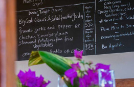 Le soir, profitez d’un délicieux dîner 3 plats (entrée, plat, dessert). Parmi les spécialités de la maison, on retrouve par exemple le risotto aux coques, la salade de papaye verte aux crevettes, les calamars farcis ou encore la glace à la banane. N’hésitez pas à signaler à l’avance si vous avez des restrictions alimentaires : des plats adaptés vous seront alors préparés. Le restaurant est uniquement accessible aux clients de l’hôtel.