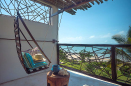 À proximité de la piscine, un premier ensemble avec 4 Deluxe Sea View Rooms donne sur le jardin. Elles sont aménagées avec un lit king-size ou deux lits simples. Les terrasses, en rez-de-jardin ou à l’étage sont aménagées avec chaise à balancier et méridienne.