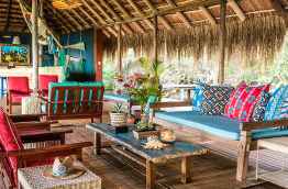 Les bungalows disposent d’un lit king-size ou de deux lits simples, de deux banquettes pouvant servir de lits enfants, d’une grande salle de bains avec douche intérieure plus une douche de plein air, de l’air conditionné, d’un ventilateur, d’un minibar, d’un coffre-fort et d’un sèche-cheveux. Ils bénéficient tous d’une superbe vue sur l’océan depuis leur terrasse privative grâce à leurs grandes baies vitrées. Un beau plancher en bois et des tissus de couleur vive les rendent accueillants et chaleureux.