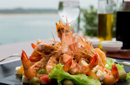 Les repas sont servis dans le restaurant avec vue sur l’océan, sous forme de buffet ou de menu selon les jours. La nourriture est toujours préparée avec des produits frais, faisant la part belle aux poissons et fruits de mer.