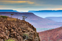 Votre aventure se poursuit vers la concession de Palmwag dans le Damaraland. Changement de décor, des paysages montagneux arides de couleur ocre rouge s’offrent à vous. Une vie sauvage évolue au milieu de ces spectaculaires immensités désertiques, notamment les éléphants et les lions adaptés au désert et les rhinocéros noirs.