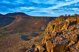 Rendez-vous à 16 h 00 au Palmwag Lodge où vous déposez votre véhicule puis rejoignez votre guide pour le départ de votre randonnée (non privatif) sur la concession d’Etendeka, située au pied des montagnes Grootberg. Votre première marche d’une durée de 2 à 3 heures vous conduit à travers les plaines rocheuses jusqu’au campement, planté au cœur de ce décor magique. Votre guide expérimenté vous donnera toutes les informations sur la faune et flore tout au long du chemin.