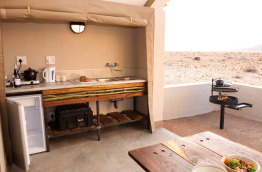 Le camp a été conçu pour être proposé en « self catering », vous disposez d’une kitchenette avec barbecue dans chaque bungalow. Mais il est aussi facile d’aller prendre les repas au Sossusvlei Lodge qui appartient aux mêmes propriétaires, à 4 km de là. Il est également possible de commander la veille tous les ingrédients vous permettant de réaliser un barbecue.